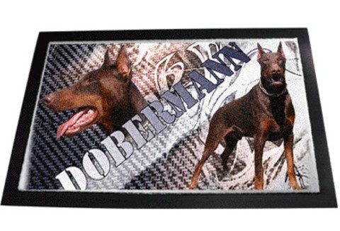 Designer Fussmatte Dobermann 2 braun / rot kupiert