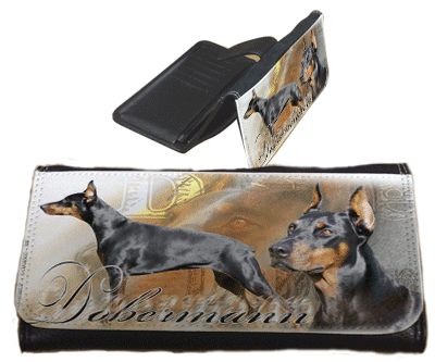 Frauen Geldbörse Brieftasche Dobermann 1 schwarz / rot kupiert