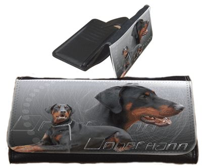 Frauen Geldbörse Brieftasche Dobermann 3 schwarz / rot unkupiert