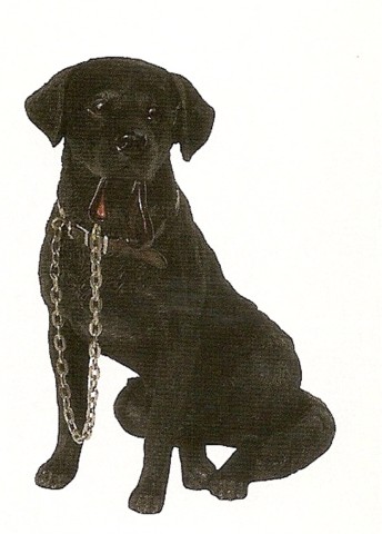 Hundefigur Labrador schwarz sitzend mit Leine im Maul