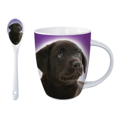 Bedruckte Kakaotasse mit Löffel Motiv: Labrador schwarz