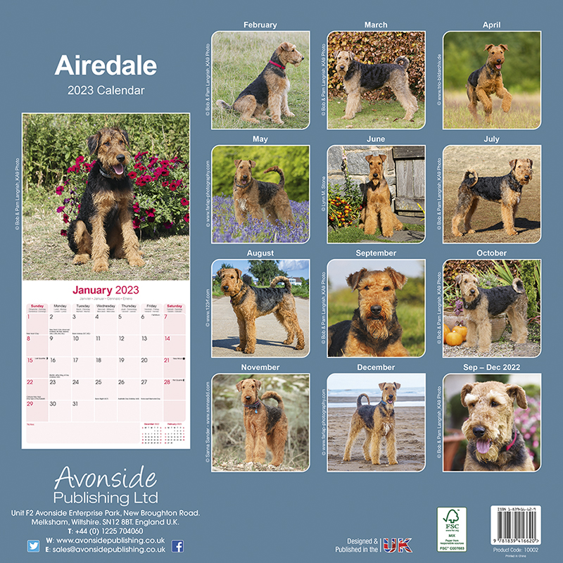 Kalender für das Jahr 2023 mit 13 wunderschönen Airedale Terrier Fotographien.