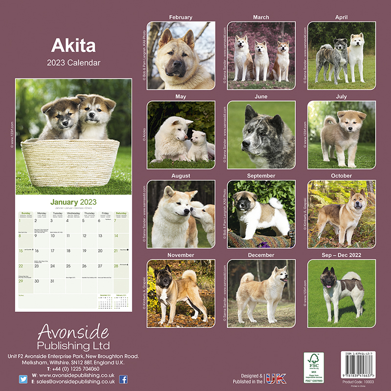 Kalender für das Jahr 2023 mit 13 wunderschönen American Akita Fotographien.