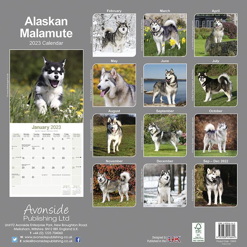 Kalender für das Jahr 2023 mit 13 wunderschönen Alaska Malamute Fotographien.