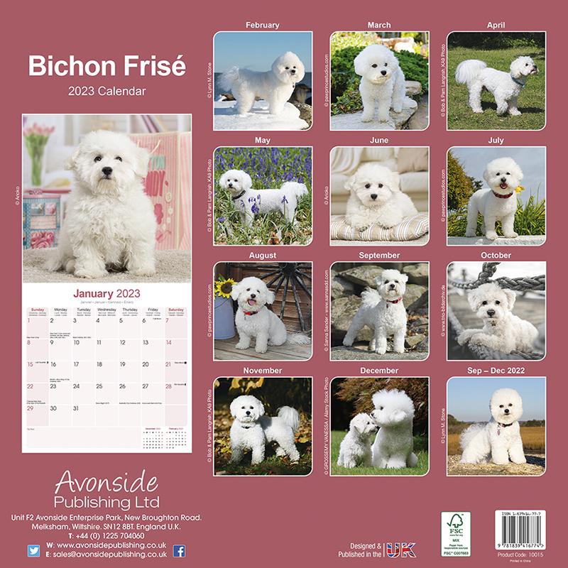 Kalender für das Jahr 2023 mit 13 wunderschönen Bichon Frise Fotographien.