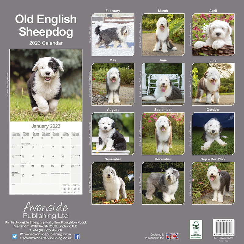 Kalender für das Jahr 2023 mit 13 wunderschönen Bobtail Old English Sheepdog Fotographien.