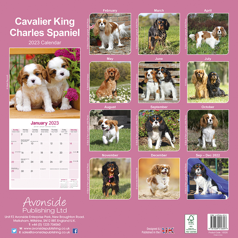 Kalender für das Jahr 2023 mit 13 wunderschönen Cavalier King Charles Spaniel Fotographien.
