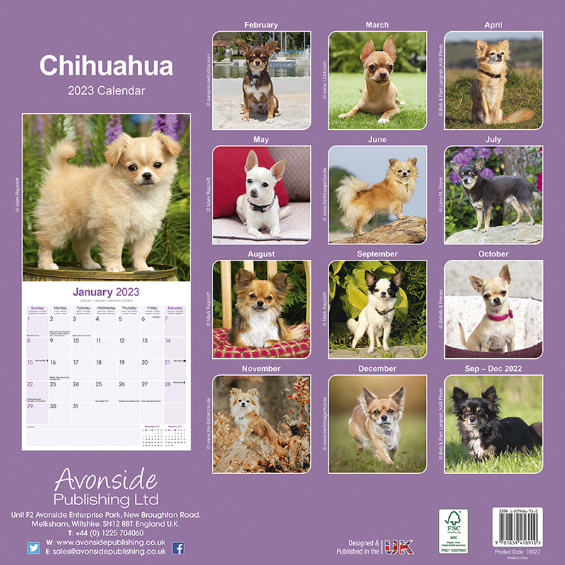 Kalender für das Jahr 2023 mit 13 wunderschönen Chihuahua Fotographien.