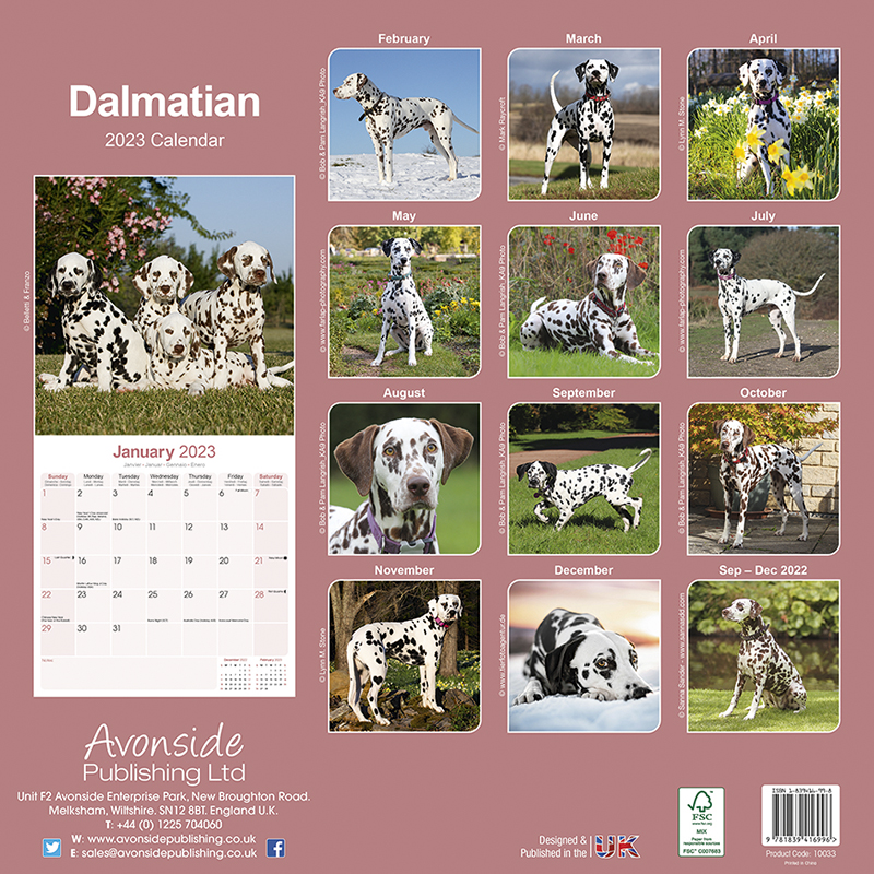 Kalender für das Jahr 2023 mit 13 wunderschönen Dalmatiner Fotographien.