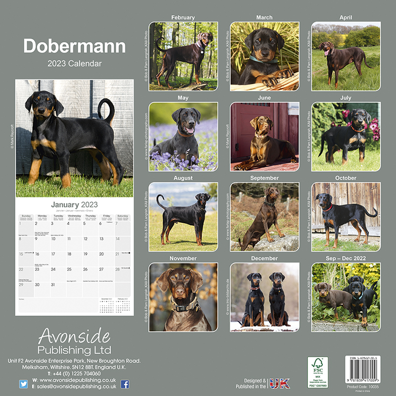 Kalender für das Jahr 2023 mit 13 wunderschönen Doberman unkupiert (Euro) Fotographien.