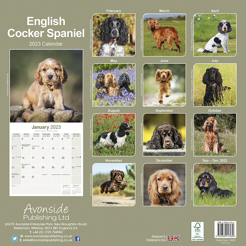 Kalender für das Jahr 2023 mit 13 wunderschönen English Cocker Spaniel Fotographien.