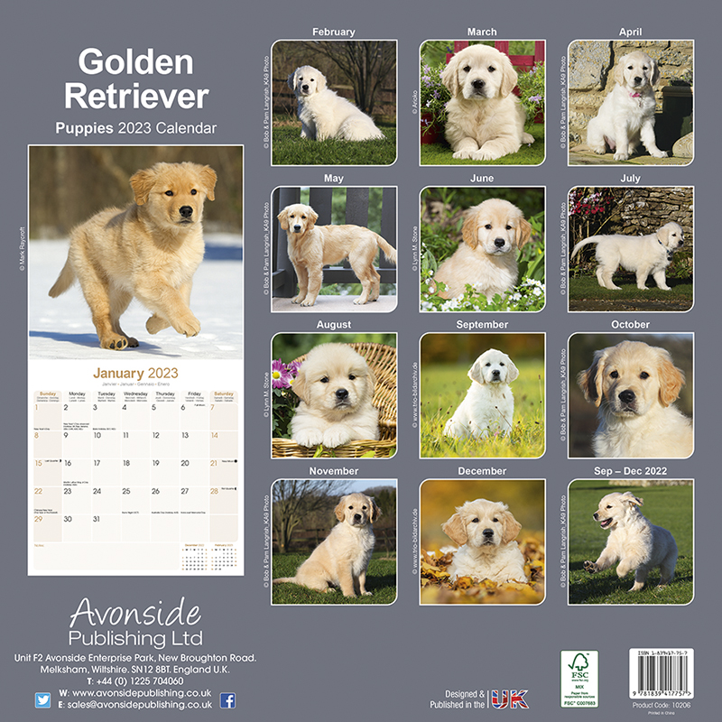 Kalender für das Jahr 2023 mit 13 wunderschönen Golden Retriever Welpen Fotographien.