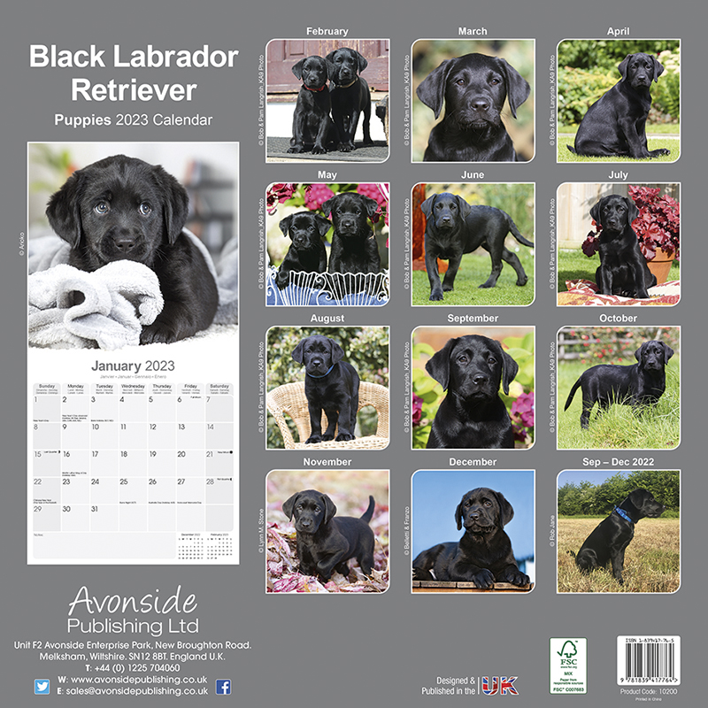 Kalender für das Jahr 2023 mit 13 wunderschönen schwarze Labrador Retriever Welpen Fotographien.