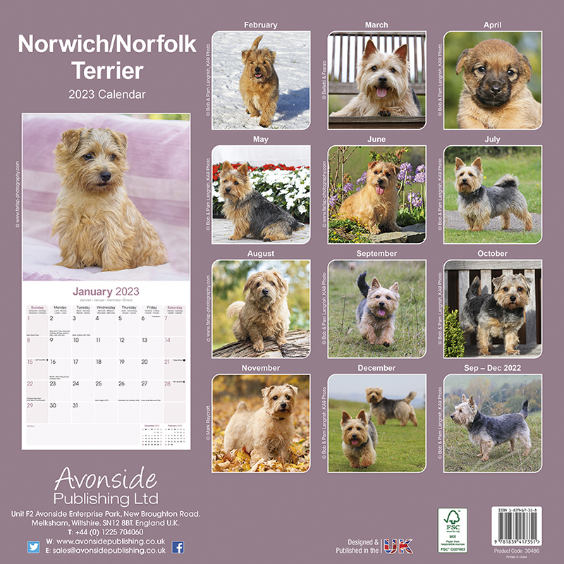Kalender für das Jahr 2023 mit 13 wunderschönen Norfolk Terrier Fotographien.