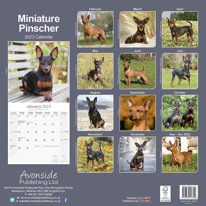 Kalender für das Jahr 2023 mit 13 wunderschönen Rehpinscher-Zwergpinscher Fotographien.