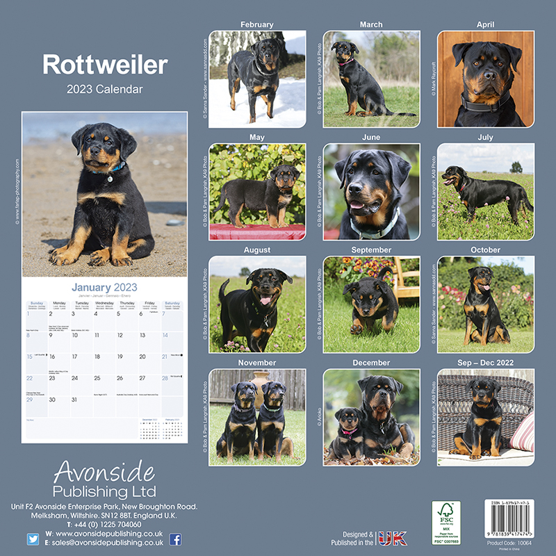 Kalender für das Jahr 2023 mit 13 wunderschönen Rottweiler Fotographien.