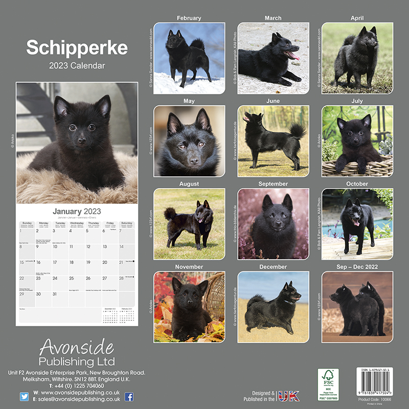 Kalender für das Jahr 2023 mit 13 wunderschönen Schipperke Fotographien.