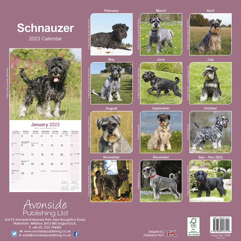 Kalender für das Jahr 2023 mit 13 wunderschönen Schnauzer (Euro) Fotographien.