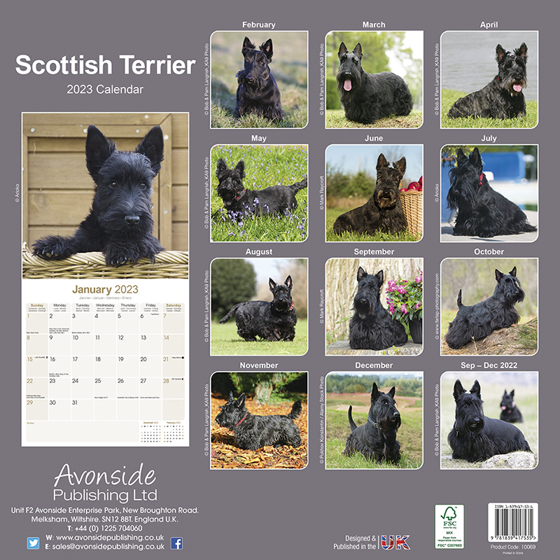 Kalender für das Jahr 2023 mit 13 wunderschönen Scottish Terrier Fotographien.