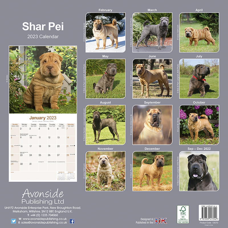 Kalender für das Jahr 2023 mit 13 wunderschönen Shar Pei Fotographien.
