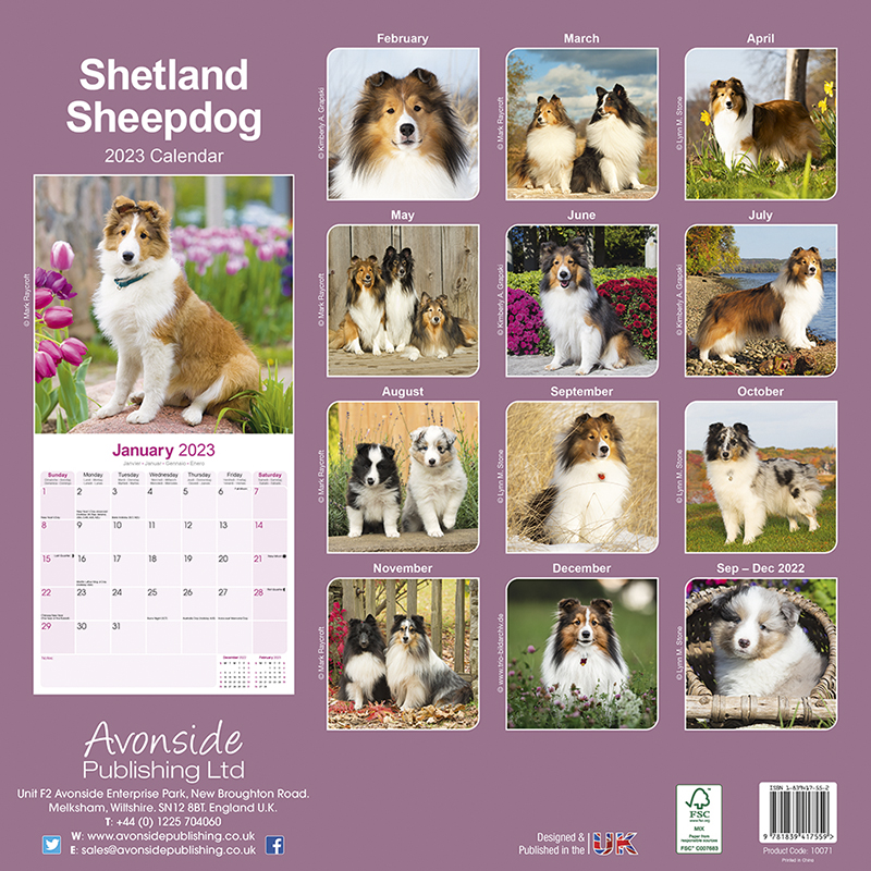 Kalender für das Jahr 2023 mit 13 wunderschönen Shetland Sheepdog - Sheltie Fotographien.