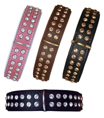 3,0 cm breites Strasshalsband, mit zweireihigem Strassbesatz.