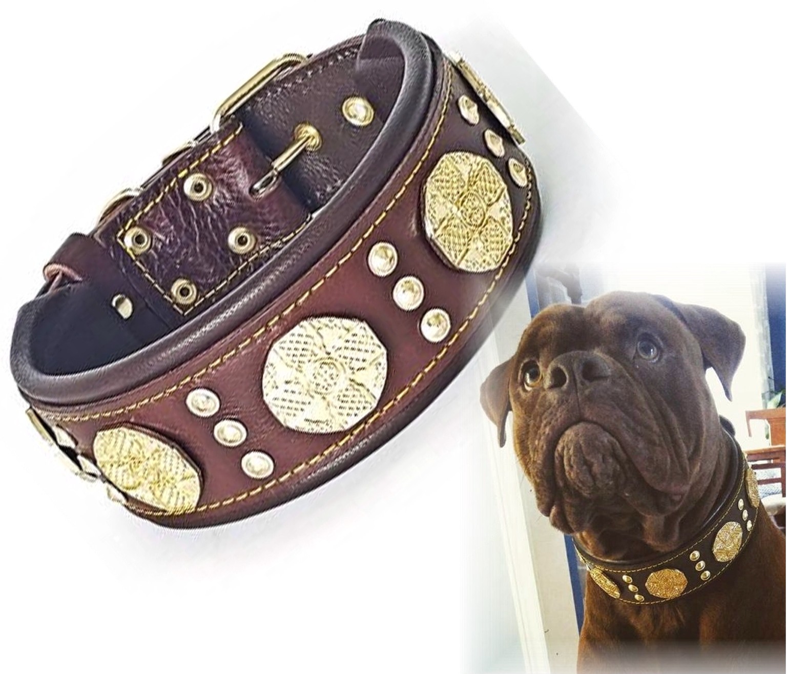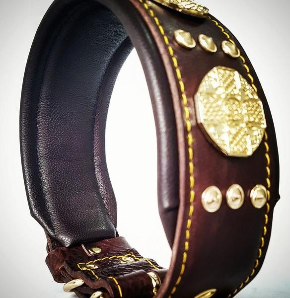 Das "Maximus" Halsband, aus unserer "Exclusive" Kollektion hat eine Kombination aus 2 Ziernietenmodellen.