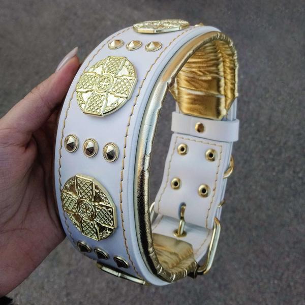 Das "Maximus" Halsband, aus unserer "Exclusive" Kollektion hat eine Kombination aus 2 Ziernietenmodellen.