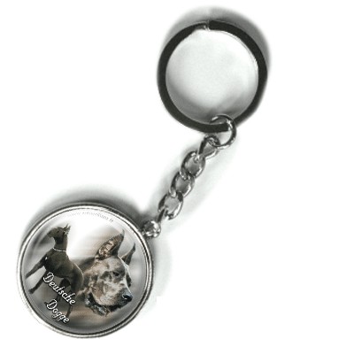 Metall Schlüsselanhänger Deutsche Dogge 4 schwarz / blau