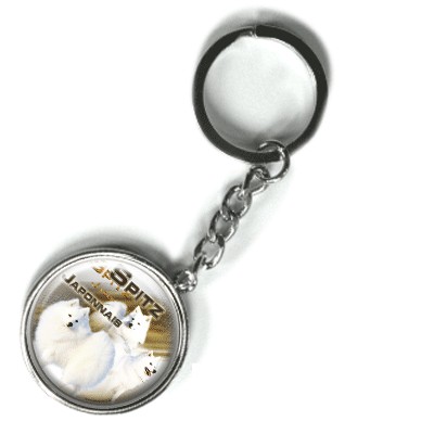 Metall Schlüsselanhänger Spitz japonnais / weisser Spitz