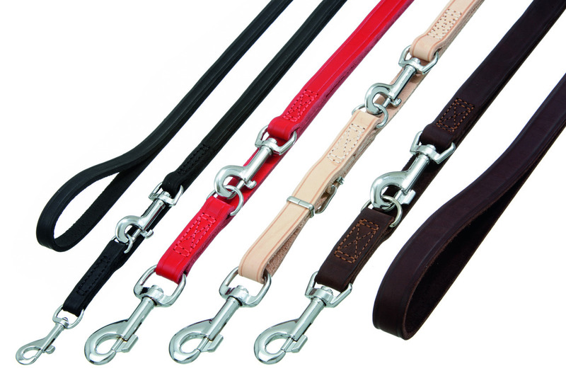 Diese solide genähte Leine aus weichem Vollrindleder ist durch das verwendete hochwertige Leder und die stabilen verchromten Beschläge besonders robust und langlebig. In der Länge 200 cm ist sie aus einem Stück gefertigt und 3-fach verstellbar, in der Länge 240 cm 4-fach verstellbar. Außerdem kann der Haken bei einer Leinenlänge von 240 cm ausgewechselt werden, z.B. gegen einen Jagdhaken. Erhältlich ist sie in den Farben schwarz, rot, natur und braun. Made in Germany.