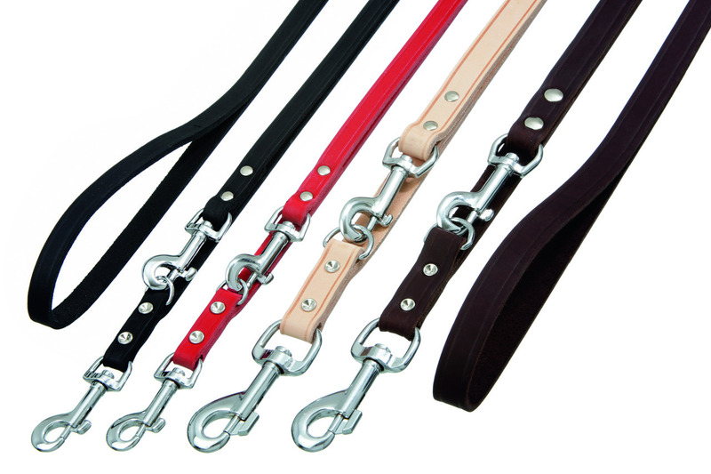 Diese solide genietete Leine aus weichem Vollrindleder ist durch das verwendete hochwertige Leder und die stabilen verchromten Beschläge besonders robust und langlebig. In der Länge 200 cm ist sie aus einem Stück gefertigt und 3-fach verstellbar, in der Länge 240 cm 4-fach verstellbar und in der Länge 350 cm ist sie 8-fach verstellbar. Erhältlich ist sie in den Farben schwarz, rot, natur und braun.