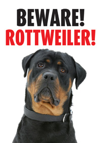 Warnschild Motiv: Beware! Rottweiler